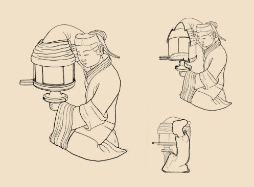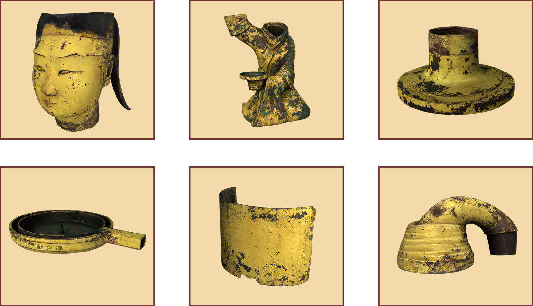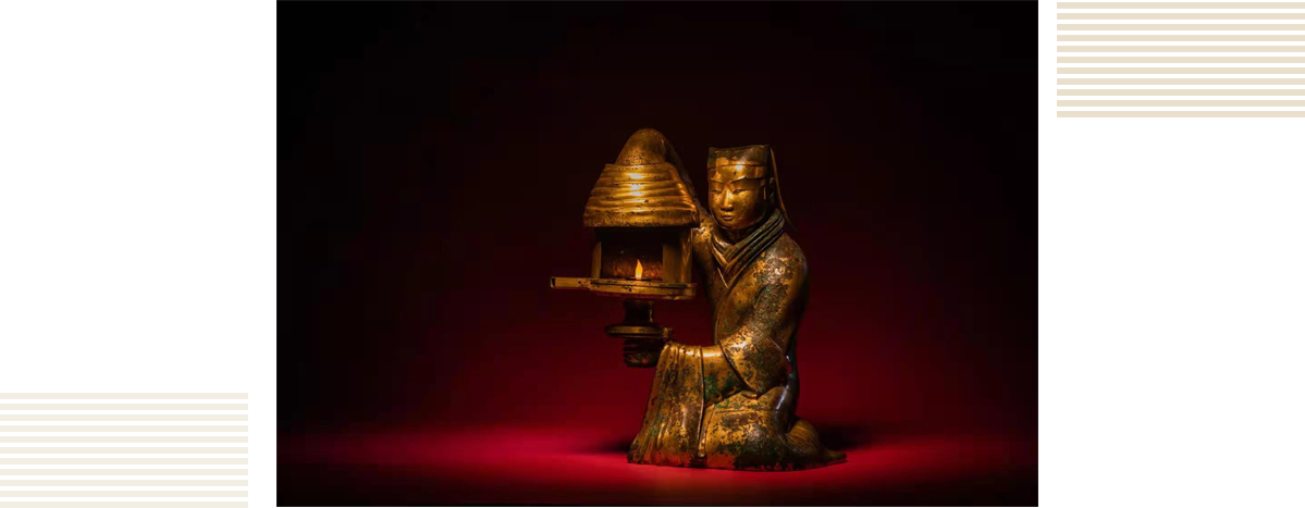 西汉初年,工匠们的大胆创造,将一位汉宫年轻侍女小心翼翼举灯的造型定格,成就了一件构思精巧、环保洁净的鎏金铜灯,灯光如炬,却不见烟气环绕。铜灯内外的铭文,讲述了她复杂的流转经历,她原属阳信侯,后辗转来到汉景帝之母窦太后的长信宫中,又被赐予中山靖王王后窦绾,成为其珍爱之物。1968年满城汉墓的偶然发现,使这盏铜灯重新面世,尽管已伴着她的主人长眠地下2000余年,但由于汉代工匠的高超技艺,她依然金光闪闪,身姿婀娜。穿越千年,当她的光芒重现,世人无不惊叹于她的美丽与智慧,将其誉为“中华第一灯”。