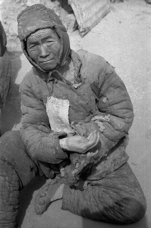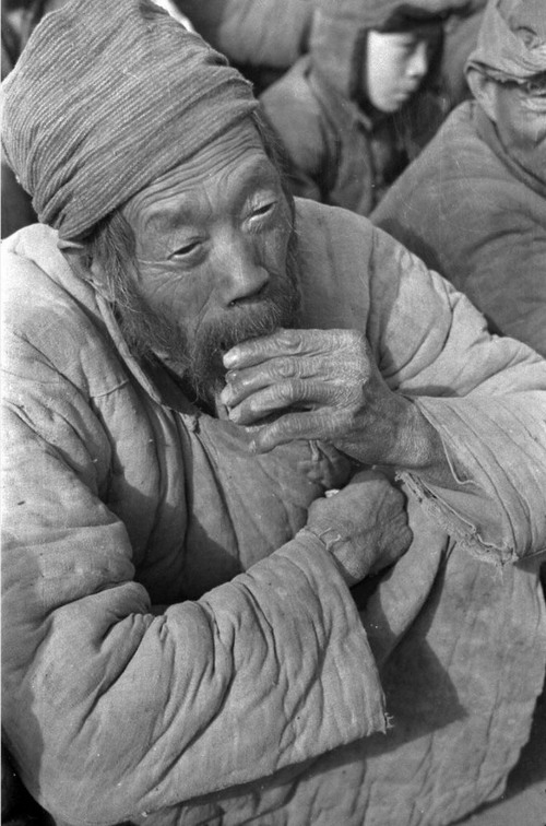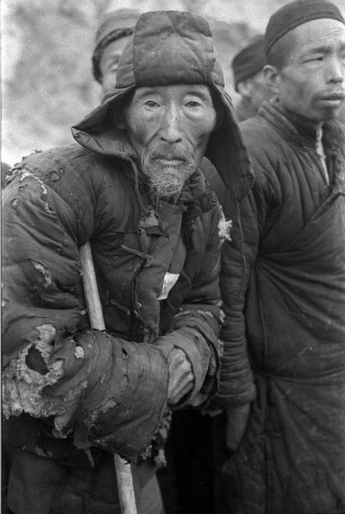 饥民们满脸沧桑,双目呆滞,他们衣衫褴褛,像灰黯的游魂,有的唉声叹气、啼饥号寒,有的像稻草人一般蹒跚而行,在绝望中挣扎求生。