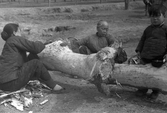 “食物”的概念在当年的中原被无限地放大了:镜头中成排的被剥光了皮的树,抱着树啃皮的人,草根、观音土、大雁屎、人类自己……一切能入腹的都成为了食物。明知会因为吃了不能消化的食物而死去,但饥饿的恐惧和推迟死亡让人们不顾一切,吃进东西可能会有明天。