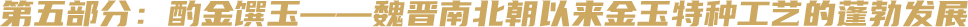 “玉”在中华文明体系中是神圣和永生的象征,折射了中华传统人文精神和审美取向。中国先秦以铜为“金”或“吉金”,青铜器在中原王朝是礼制的载体,是权力与等级的象征。秦汉以后,黄金以其珍稀和不朽的象征,逐渐在高端制器中广为使用。