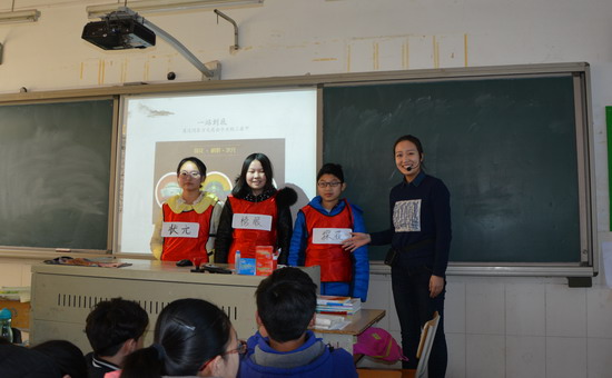 这两次宣讲活动正值期终考试后,宣讲团成员陈莹莹为同学们量身定制的小讲座《考场风云——科举制度》,题目一出便引起了同学们的共鸣。在了解了同学们在初一便学习过科举制度后,陈莹莹便灵活改变了先前以“讲”为主的方式,与历史课本紧密联系,以一问一答的形式进行,既复习了知识重点,又进行了延伸拓展,既让同学们了解了科举制度产生的时代、发展变化又让同学们自己总结了科举制度对我们现在生活的影响。在最后的互动环节中,同学们身着红马褂进行一站到底的知识PK赛,最终决出了“三鼎甲”。