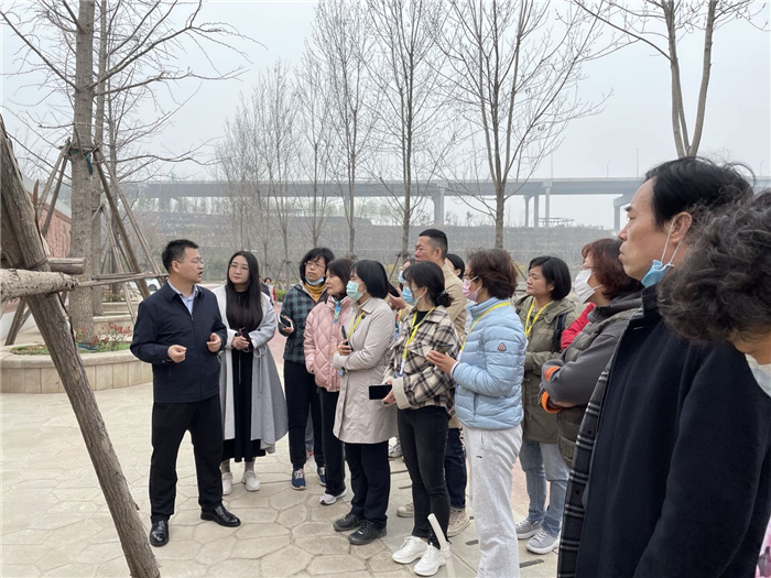 董永立院长是贾鲁河工程的主要设计者,对贾鲁河文化、郑州市水文化研究深有研究,是郑州水文化教育基地的主创人员。他带领志愿者先后来到贾鲁河生态修复展厅、“贾鲁史歌”浮雕墙、贾鲁河分水口瀑布(牛口峪)、贾鲁河五河理念展厅、祥和山、贾鲁河历史文化展厅等处学习。董院长为志愿者介绍了贾鲁河生态修复相关情况和“五河”理念,特别是对贾鲁河沿线蕴含的历史文化进行了深度解读,引经据典、信手拈来,犹如一场“大师课”。