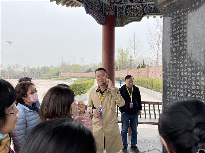 中原历文化宣讲团成员在三位专家志愿者的带领下参观了花园口泵站等当代水利设施,科普了水利原理、梳理了历史脉络、充分了解了引黄原理。