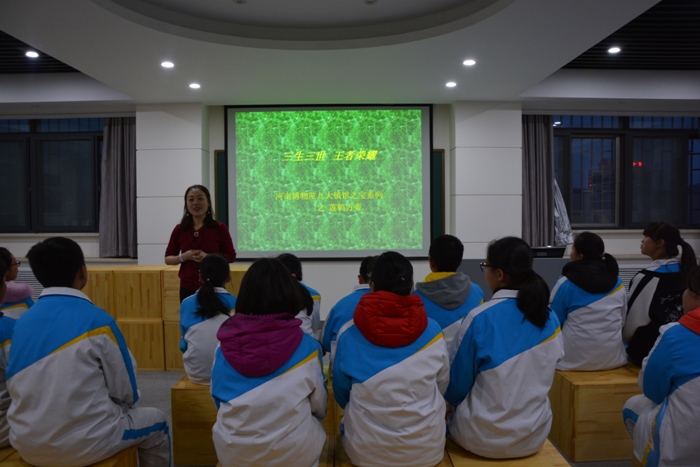 值得一提的是这次课程在形式上做了新的尝试,以角色游戏的方式请同学们参与进来。王纳老师带领同学们化身莲鹤方壶,每人一小段台词,参与互动起来,以第一人称的视角来讲述作为王者的莲鹤方壶三生三世的荣耀。