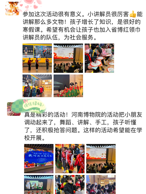憨态可掬的Q版“小小唐俑仕女”、大气稳重的国宝讲解展示、红领巾讲解员职业体验、古文字中寻“家”书写体验、科普教育展参观,在90分钟的活动中,80余名活动参与人沉浸在探索和发掘河南段黄河文化的浓厚氛围中。