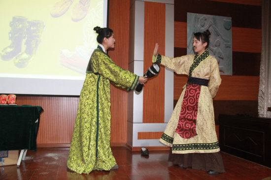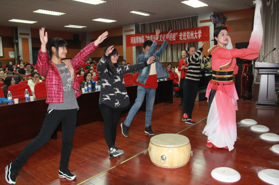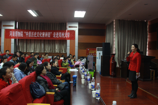 考虑到宣讲对象的年龄、知识层次以及接受程度,讲解员们对此次宣讲活动的节目采取了精心的设计编排,内容上也力求涉及广泛,宣讲活动采取了互动有奖问答、讲座、舞蹈、英文小品等多种形式,使同学们在轻松愉快的氛围中学习到历史、文物类知识,进一步感受到中原文化的博大精深。