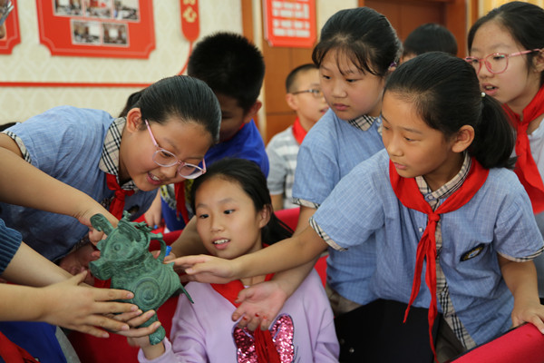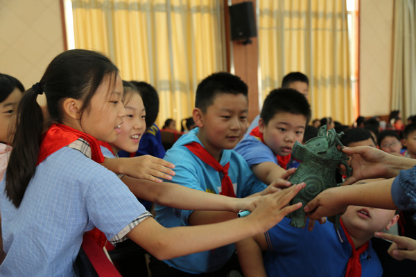 触摸“国宝”,同学们与“国宝”亲密接触,零距离感知历史,感受中原文明
