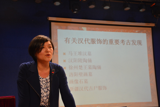 讲座在悠扬的汉代乐曲中拉开了帷幕。徐蕊博士向同学们介绍了这个时期服饰考古资料的发现情况,汉代服饰款式、形成及发展变化等知识,通过结合汉代社会背景启发同学们对中国传统服饰文化精髓的理解,感悟汉服的艺术魅力。讲座中强调阅读历史文献的重要性,引申出关于中国服饰考古学研究的方法更是吸引了同学们对中国古代服饰研究的浓厚兴趣。