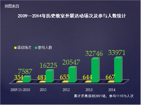 表4:《2009——2014年历史教室开展活动场次及参与人数统计》