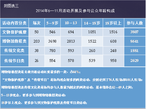 表3:《2014年6—11月活动开展及参与公众年龄构成》
