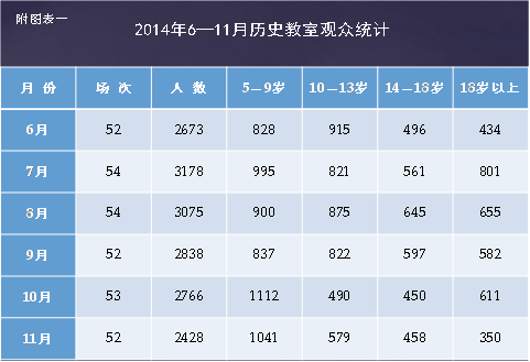 表1:《2014年6—11月历史教室观众统计》