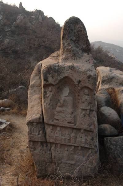 方城佛沟摩崖造像,位于河南省方城县县城东南60公里小史店镇东南8公里姚林村南桐柏山余脉香山之半山腰处。据民国三十三年的《方城县志》记载:“《宋志》载香山在州(方城县城)东南120里,上有香山寺,摩崖造像,大者二尺余,小者尺余,背有千手千眼菩萨,盖仿龙门石窟而为之。”山上原建有香山寺,现已荡然无存。这里是南阳盆地与黄淮平原、伏牛山脉与桐柏山脉的分界线,素以“南襄隘道”著称,向为南北交通要道,也是唐代后期中原佛教南传川渝的必经之路,佛沟摩崖造像,就是这条古道上的重要佛教遗存之一。由于其地处深山,交通不便,故不显于世。1979年,方城县文物管理委员会在对全县文物进行普查时发现此处摩崖造像,遂于1981年《文物资料丛刊》第五期发表刘玉生、马俨鹏所撰《河南方城县发现古襄州摩崖造像》一文①,对该处造像进行了简略介绍。笔者于2008年1月对其进行了实地考查,将有关资料进行整理并对其进行初步研究,于2009年《中原文物》第1期发表《方城佛沟摩崖造像调查与研究》一文。2009年5月29日,中央电视台《百科探秘》播出了以摩崖造像为主题的节目,引起了当地政府的高度重视,遂邀请国内佛教考古界专家对该处摩崖造像进行鉴定,本人有幸随专家组一道,对该处摩崖再次进行考察和论证。就在此次论证不久,方城县文化局的同志在距此处摩崖不远处又发现一处十二臂观音造像,欣喜之余,总感有必要将本次考察收获和专家意见进行整理,对新发现的造像进行公布,以飨读者。