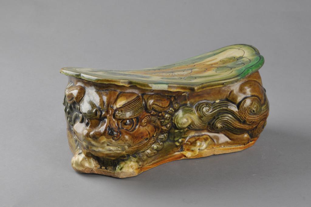 三彩狮形座枕