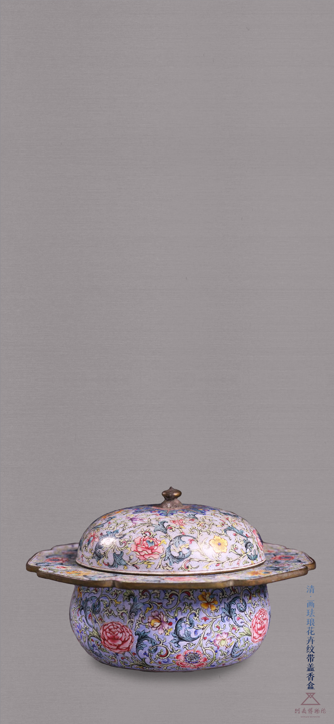 画珐琅花卉纹带盖香盒