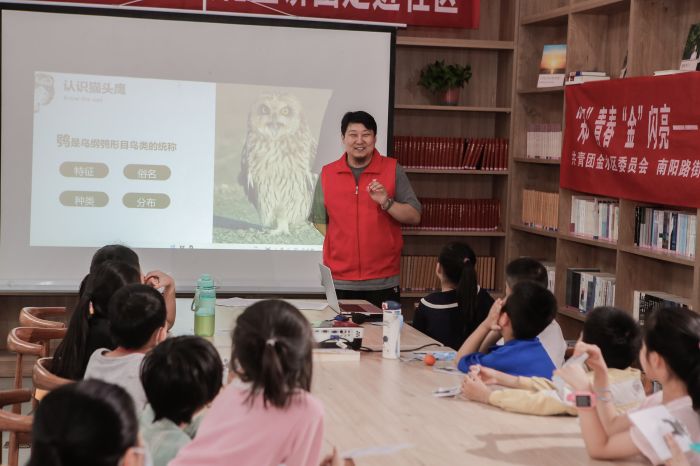 为了让小朋友们更容易理解,主讲人志愿者韩铭从“鸮”——也就是猫头鹰开始讲起,介绍了它的形象、种类、生活习性等各方面,还在现场播放了不同地区、不同属种猫头鹰的叫声,并发起了猫头鹰叫声模仿秀,使得课堂气氛一下子热烈起来。充分调动起孩子们的积极性之后,志愿者韩铭话题一转,将宣讲内容拉回文物本身,从“尊”的含义、主人妇好的身份、鸮尊的造型和花纹等各个方面深入浅出地带小朋友们认识了妇好鸮尊。