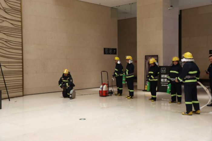 演练结束后,郑州市应急救援支队科源路中队现场为全体员工进行的消防安全知识普及并演示消防水带的使用方法,以提高全体员工消防安全意识。