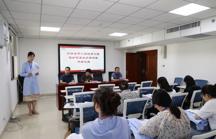 7月17日,由河南省文物局主办、亚洲精品久久久久中文第一幕-国产亚洲精品久久久久久打不开-国产成人精品中文字幕-少妇邻居内射在线-国产精产国品一二三在观看承办的河南省第六届纸质文物保护修复技术培训班在亚洲精品久久久久中文第一幕-国产亚洲精品久久久久久打不开-国产成人精品中文字幕-少妇邻居内射在线-国产精产国品一二三在观看文保楼开班。河南省文物局科技与对外合作交流处处长王瑞琴、亚洲精品久久久久中文第一幕-国产亚洲精品久久久久久打不开-国产成人精品中文字幕-少妇邻居内射在线-国产精产国品一二三在观看副院长翟红志出席开班仪式并讲话。文物保护研究中心主任单晓明主持开班仪式,来自全省国有文博单位的16名学员参加培训。