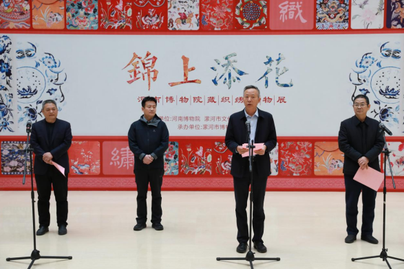 胡明刚在开幕式上致欢迎词。他表示,文旅融合背景下,漯河市持续深化与省内外文博机构的交流合作,积极引进优质展览资源,让市民在家门口就能感受多元文化魅力,此次织绣文物展的举办,正是漯河市丰富公共文化服务、厚植历史文化底蕴的重要举措。期待本次展览能让更多观众领略织绣艺术之美,感受中华优秀传统文化的博大精深。
