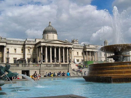 英国国家美术馆(The National Gallery,又译为国家艺廊),是位于英国伦敦市中心特拉法加广场的正北方向,相当于北京天安门广场正北方向的故宫博物院。国家美术馆又称伦敦国家美术馆,成立于1824年。当时仅有38幅画作,从这些由乔治四世说服政府购买林布兰、拉尔等人的38个作品,陆续拓展为现在以绘画收藏为主的国家级美术馆。