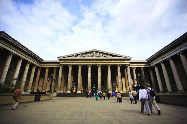 大不列颠博物馆:大不列颠博物馆,即大英博物馆始建于 1823年。她的展览馆里保存着最能代表英国艺术和文学的珍品,有很多极珍贵的文件与手稿,如英国大宪章的原稿、莎士比亚手稿真迹等等;有埃及、西亚、东方、希腊、罗马和英国的历史文物;有英国历代的“战利品”,如小巧的埃及狮身人面像、从雅典女神殿取来的爱尔琴大理石等等;此外还收集了中国、印度等历史悠久国家的民俗资料、美术品及出土文物。在中国展室可看到许多中国古玩字画,这些器物多是英法联军、八国联军侵略中国时掠夺的。其东方艺术馆的藏品绝大多数是中国文物,达两万多件。其中有六千多年前的半坡村红陶碗,新石器时代的玉刀、玉斧,商周的青铜器,秦汉以降直至明清各个时期的瓷器、玉器、漆器、绘画、雕塑等等,乃至博物馆后门的两座大石狮,都是中国艺术品。这里还藏有斯坦因从敦煌藏经洞掠夺的大量佛画。其馆藏最著名的中国名画是传为东晋大画家顾恺之所作《女史箴图》。这是一卷流传有绪的著名巨迹,在中国绘画史上占有极高的地位。此件是1900年八国联军侵占北京时劫往英国的。 其图书馆以丰富的馆藏闻名于世,英国的每种书在此都有保存,事实上,国家所有的出版发行物你都能在此找到。此外不乏各国珍贵的版本和极具价值的文献手稿。这个图书馆是最佳学问天地,马克思的《资本论》即在此完成。大英图书馆的藏书中,中国古籍达六万多种,内有中国波罗蜜佛经的最早版本,《永乐大典》45卷,中国历代宫廷档案、竹简、刻本等,还有敦煌写本一万余件。