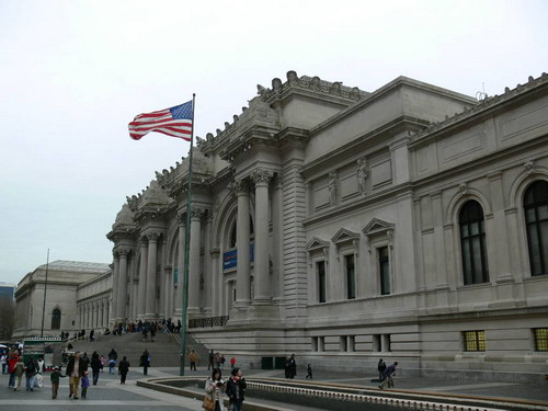 纽约大都会博物馆是美国最大的博物馆,建于1870年,整个博物馆是一幢大厦,占地8公顷,为北京故宫博物院的1/9,但展出面积很大,不下24公顷,反而是故宫博物院的两倍。大都会博物馆号称是西半球最大的博物馆,仅画廊就有200多个,藏有300多万件各类文物和艺术品。内容却丰富多彩,体现了资金足、气派大的美国风格。 移置在馆内专建的大厅中巨型玻璃罩里的完整的公元前15年的埃及神殿,它的总重量为800吨,据说拆的时候为了确保原貌,还给每块砖上都打了标号,令人叹为观止,可谓镇馆之宝。服饰馆也堪称世界之最,收集了4个世纪以来五大洲的各民族服装1.5万件。我国的苏州园林,1981年9月才由我国苏州能工巧匠建成的明轩也被仿建在博物馆的主楼二层的北厅之中,这可能真是典型的“文化移植”了,十分吸引观众,为了避免拥挤,规定了专门路线入园,由定时电梯控制人数。园中飞檐、雕梁、鱼池、凉亭,室内对联、掸瓶、八仙桌、太师椅一应俱全。除明轩外,还按时间和国别布置了英国、法国和西班牙从14至18世纪的室内陈设。尽管都是一样的富丽堂皇,但法国式的画顶、英国式的壁炉和西班牙式的家具还是刻上了不同时代和不同民族的烙印。博物馆内还收藏了大量来自中国的文物和艺术品,特别是一些佛像和壁画,游客在馆内还可以欣赏到一些珍贵的中国古代绘画,例如唐代韩干的《照夜白图》。