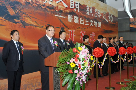 2011年10月20日,院长张文军在“大漠文明 丝路遗韵——新疆出土文物展”引进特展开幕式上致辞。