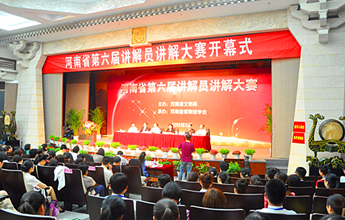 河南省文物局局长陈爱兰在讲话中表示,从1992年起,河南省文物局每四年举办一次讲解大赛,至今已是第六届。每届大赛都通过严格培训、层层选拔,不仅在全省文博系统掀起了讲解技能大练兵的热潮,同时培养壮大了讲解队伍,使一批优秀讲解人才脱颖而出,从而有效提高了博物馆社会教育服务工作的整体水平,为展示传承中原悠久历史、推动中原经济区文化建设做出了应该有的贡献。