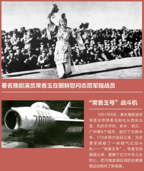 1949年至1953年,党领导河南人民分三批开展了轰轰烈烈的土地改革。于此同时,河南人民响应中共中央关于抗美援朝、保家卫国的号召,踊跃参军参战,捐钱捐物。著名豫剧演员常香玉在半年时间进行了170多场义演,并为志愿军捐献了一架喷气式战斗机,被命名为“常香玉号”。