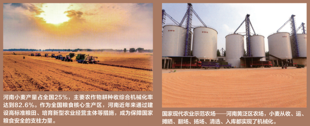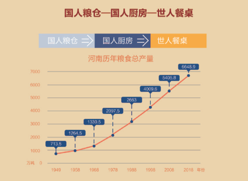 河南省切实稳住“三农”这个基本盘,通过推动藏粮于地、藏粮于技,扛稳粮食安全重任,牢牢守住耕地保护红线,建设高标准粮田,提高农业科技水平,稳步提升粮食产能,同时加快农业供给侧结构性改革,大力发展农产品加工业,培育形成了以漯河“双汇”、郑州“思念”、郑州“三全”等为代表的龙头加工企业,农业生产实现了由国人“大粮仓”到国人“大厨房”的历史嬗变。