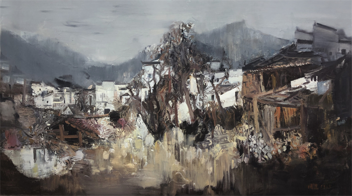 《婺源三——春雨蒙蒙》80x130 cm布面油画 2018年