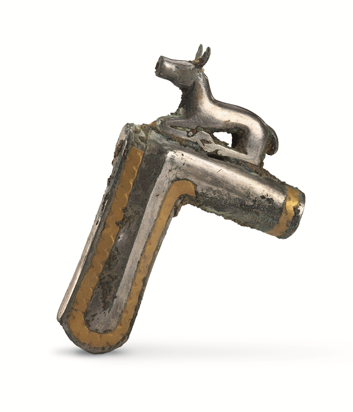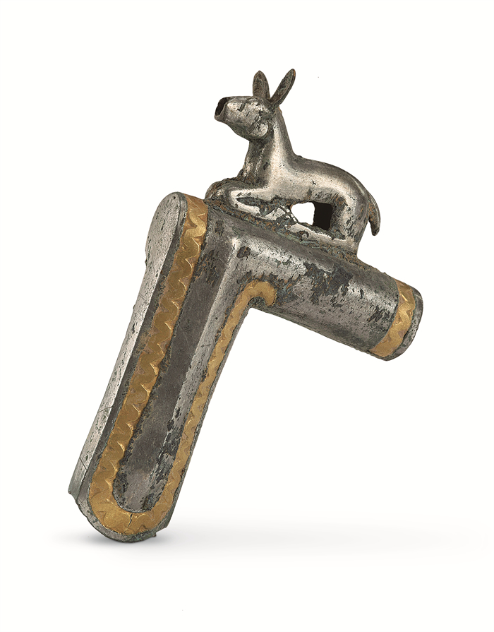 卧鹿“L”形贴金青铜饰 战国—秦代