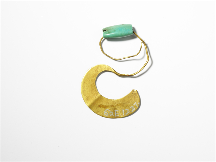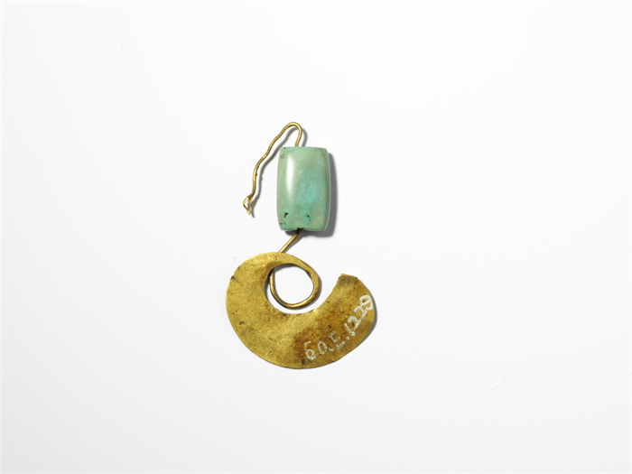穿珠式耳饰主要存在于夏商时期太行山到黄河东岸的北方地区,黄金与绿松石以穿缀形式组合而成。