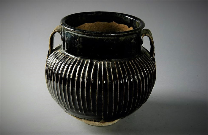 黑釉凸线纹瓷罐