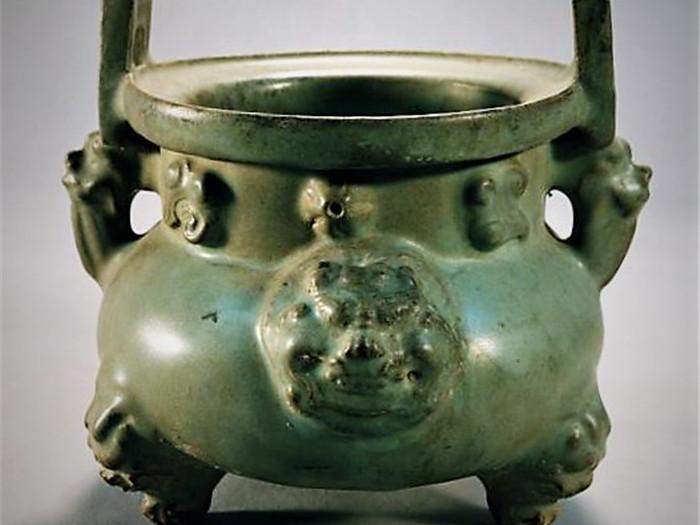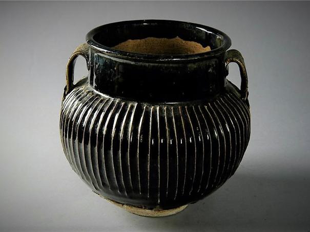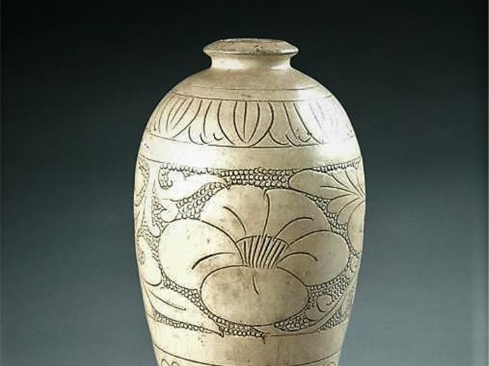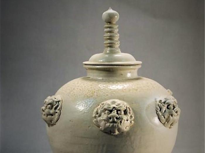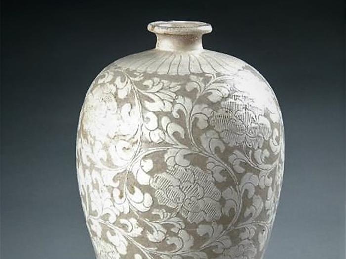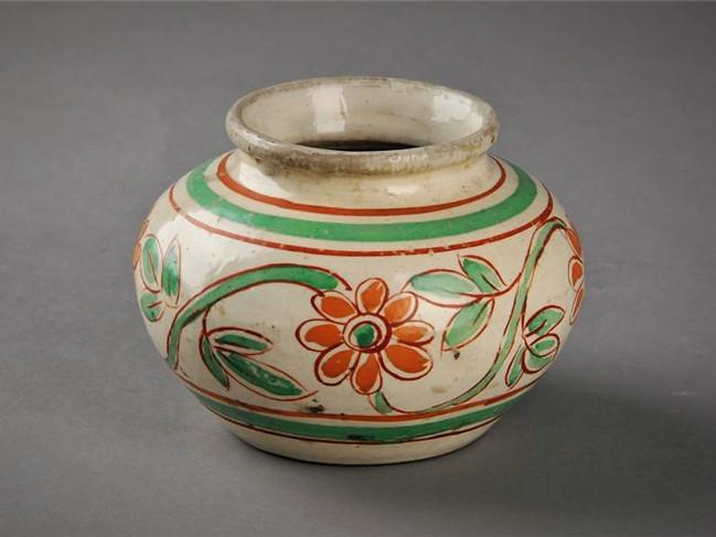 当阳峪窑白釉红绿彩缠枝花卉纹罐