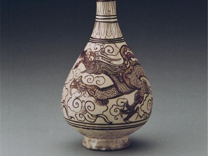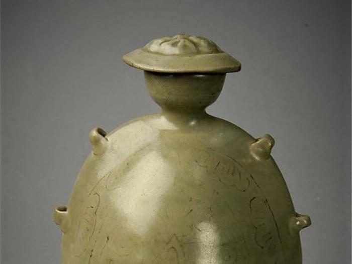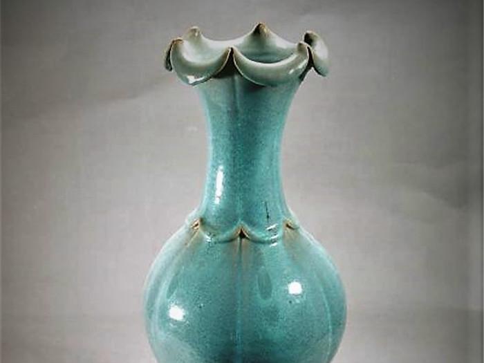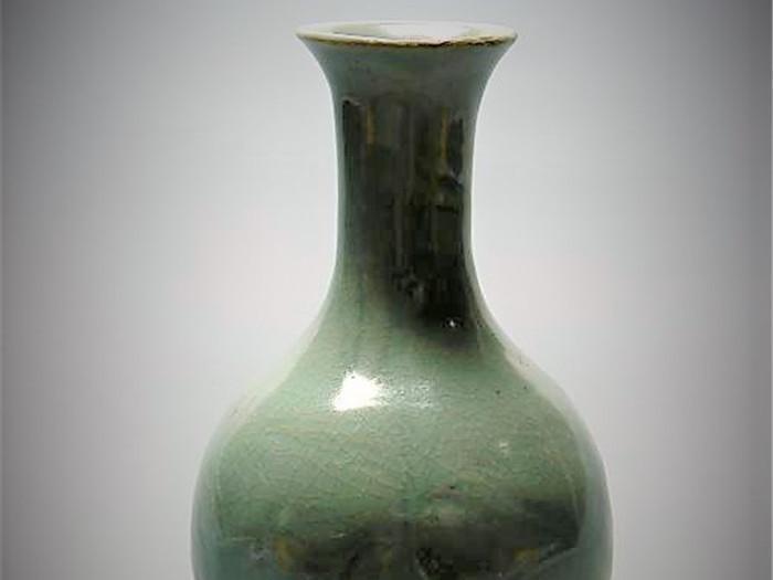 汝窑天蓝釉刻花鹅颈瓷瓶