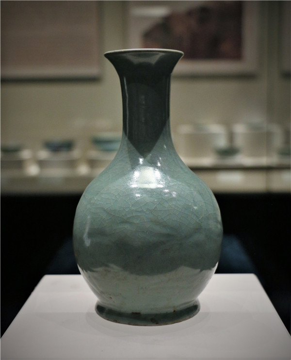 天蓝釉刻花鹅颈瓶