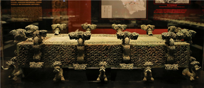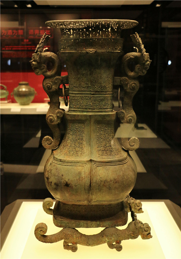 楚人以帝高阳之苗裔自居。周成王时,熊绎立国于楚地,都丹阳(今河南淅川),筚路蓝缕,励精图治;春秋时期,楚先后吞并汉淮之间四十余国,楚庄王一度饮马黄河,败晋服郑,问鼎中原。雄厚的国力与多元的传统造就了独具特色的楚文化。丹淅流域是楚文化滥觞之地,楚人在此留下了丰富的文化遗存。这里展出的淅川东周楚墓青铜器,以其富丽纹饰和精湛工艺,展现了楚文化独领风骚、彪炳千秋的魅力。