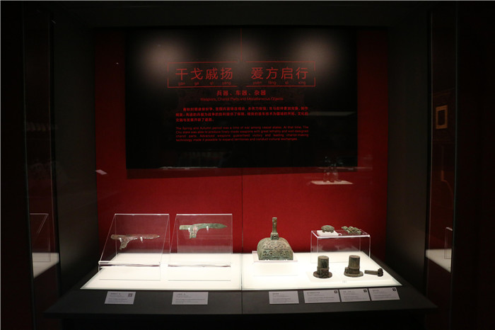 春秋时期诸侯纷争,楚国兵器铸造精良,杀伤力极强;车马配件更加完备,制作精美。先进的兵器为战争的胜利提供了保障,精良的造车技术为疆域的开拓、文化的交融与发展开辟了道路。