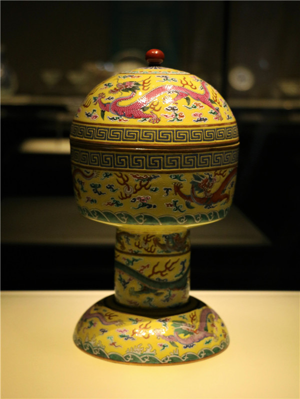 珐琅器在元代由西亚传入中国,经明宣德、景泰两朝的努力,工艺突飞猛进。其以金属为胎,施珐琅釉焙烧而成,因工艺技法不同可分为掐丝珐琅、錾胎珐琅、透明珐琅和画珐琅数种。器物色调鲜艳,格调秀雅。