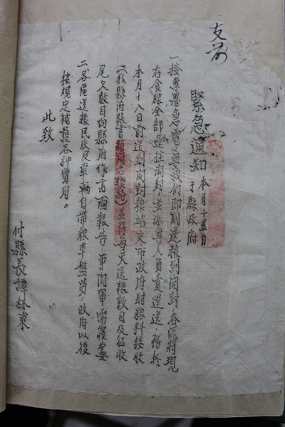 焦裕禄为转押恶霸李心营写给司法科长张书盈的信