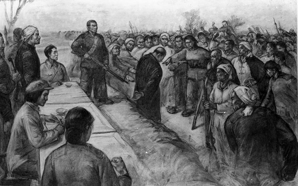 焦裕禄在尉氏县大营区领导群众进行土地改革,使无地或少地的农民,分到了土地。