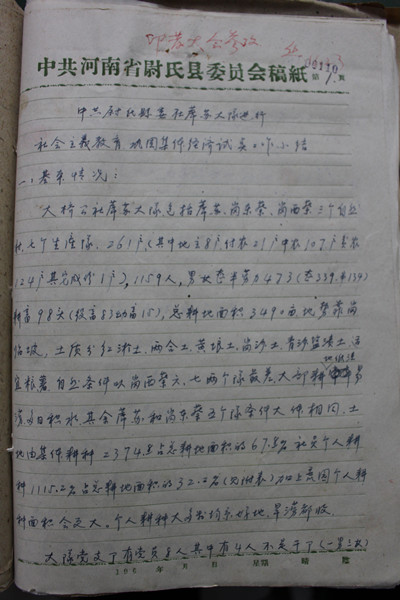 文献:焦裕禄在大桥乡席苏村驻村时工作小结