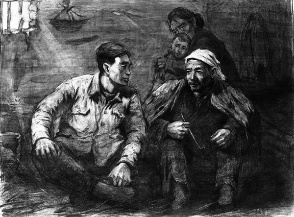 焦裕禄在尉氏县,走村入户,访贫问苦,深入发动群众,开展土地改革运动。