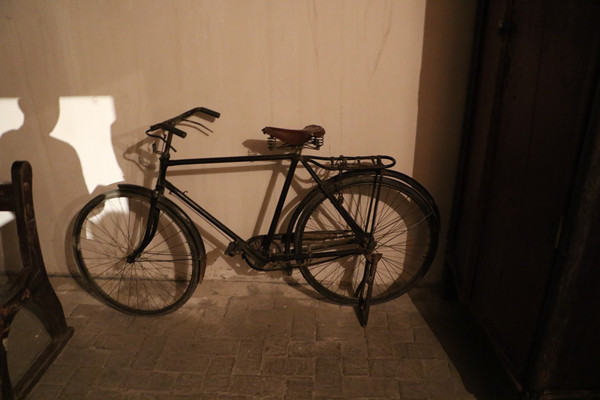 这是焦裕禄用过的自行车。当年,他靠着这辆自行车和自己的双脚,走遍了全县120多个生产大队,跋涉5000多里路。风沙天,他追着沙子跑;暴雨天,他拄根高粱杆搏击激流……把全县所有风口、沙丘、河渠一一丈量,编号、绘图。
