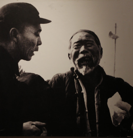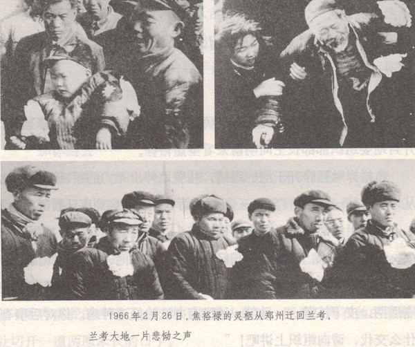 1962年12月9日,焦裕禄到兰考工作的第三天,就到了老韩陵村,挨家挨户到群众家中访问,还专门住进70岁的饲养员肖位芬老大爷的牛屋,与老人三次彻夜长谈,向他了解情况,请教经验。图为迁葬大会上,肖位芬老泪纵横地说:“焦书记啊,你是为了兰考人民而累死的啊……”