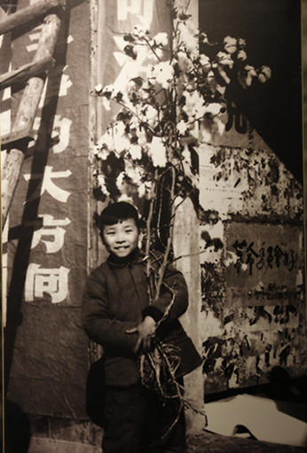 焦裕禄之子焦跃进看到改良后的盐碱地上长出的棉花稞高兴地喊:“盐碱地上的棉花丰收啦!”
