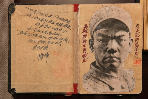 一九六0年十月二十一日 今天吃过早饭,连首长给了我们一个任务,上山砍草搭菜窖。……劳动到了十二点,大家拿着自己从连里带来的盒饭,到达了集合地点,去吃中午饭。当时,我发现王延堂同志坐在一旁看着大家吃,我走到他面前,他没有带饭来,于是我拿了自己的饭给他吃,我虽饿一点,让他吃饱,这是我最大的快乐。我要牢牢记住这段名言: "对待同志要象春天般的温暖,对待工作要象夏天一样火热,对待个人主义要象秋风扫落叶一样,对待敌人要象严冬一样残酷无情。"
