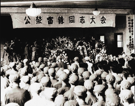 1962年8月17日,抚顺市军民在望花区政府礼堂举行了隆重的追悼大会,沉痛悼念伟大的共产主义战士雷锋。