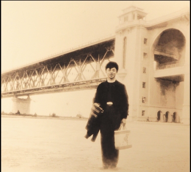 1958年11月雷锋赴鞍钢途径武汉时在长江大桥下留影。
