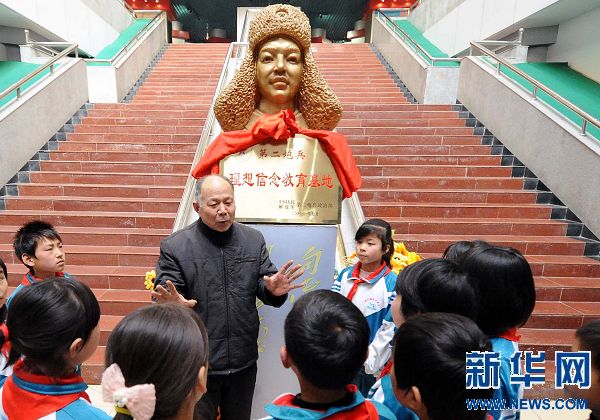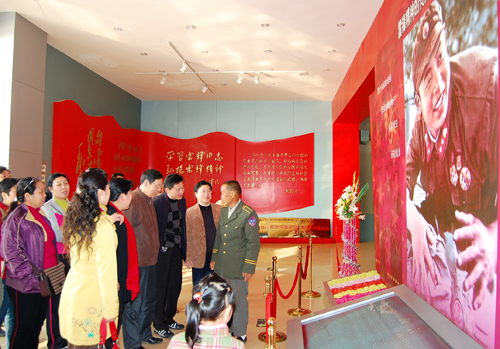 2012年2月21日“编外雷锋团”团长宋清梅在展览馆向学生们讲述雷锋事迹。